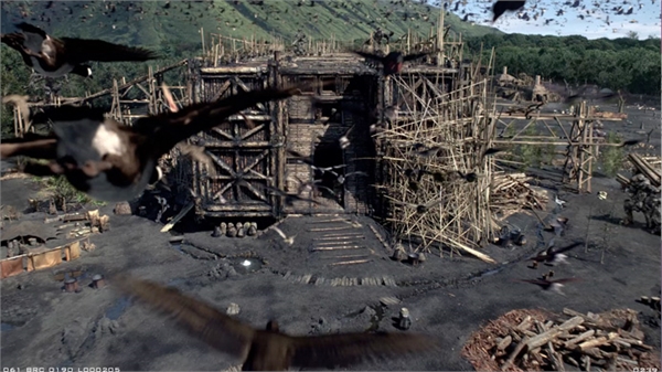 Another key component of our bird work was our use of Deep compositing. Used for the first time on a large scale for a live-action VFX project by Weta on Rise of the Planet of the Apes, Deep compositing allows compositors to work in 3D space in a way that provides added flexibility and functionality that would not be available in a normal 2D compositing approach. Simply put, without our use of Deep compositing, we would not have been able to do this work. It was the basis of how we put together our most complex shots and was one of the first decisions we made. Going forward, it made the bulk of our task easier, especially later in the process when changes that might have otherwise been major were handled more easily due to this approach.