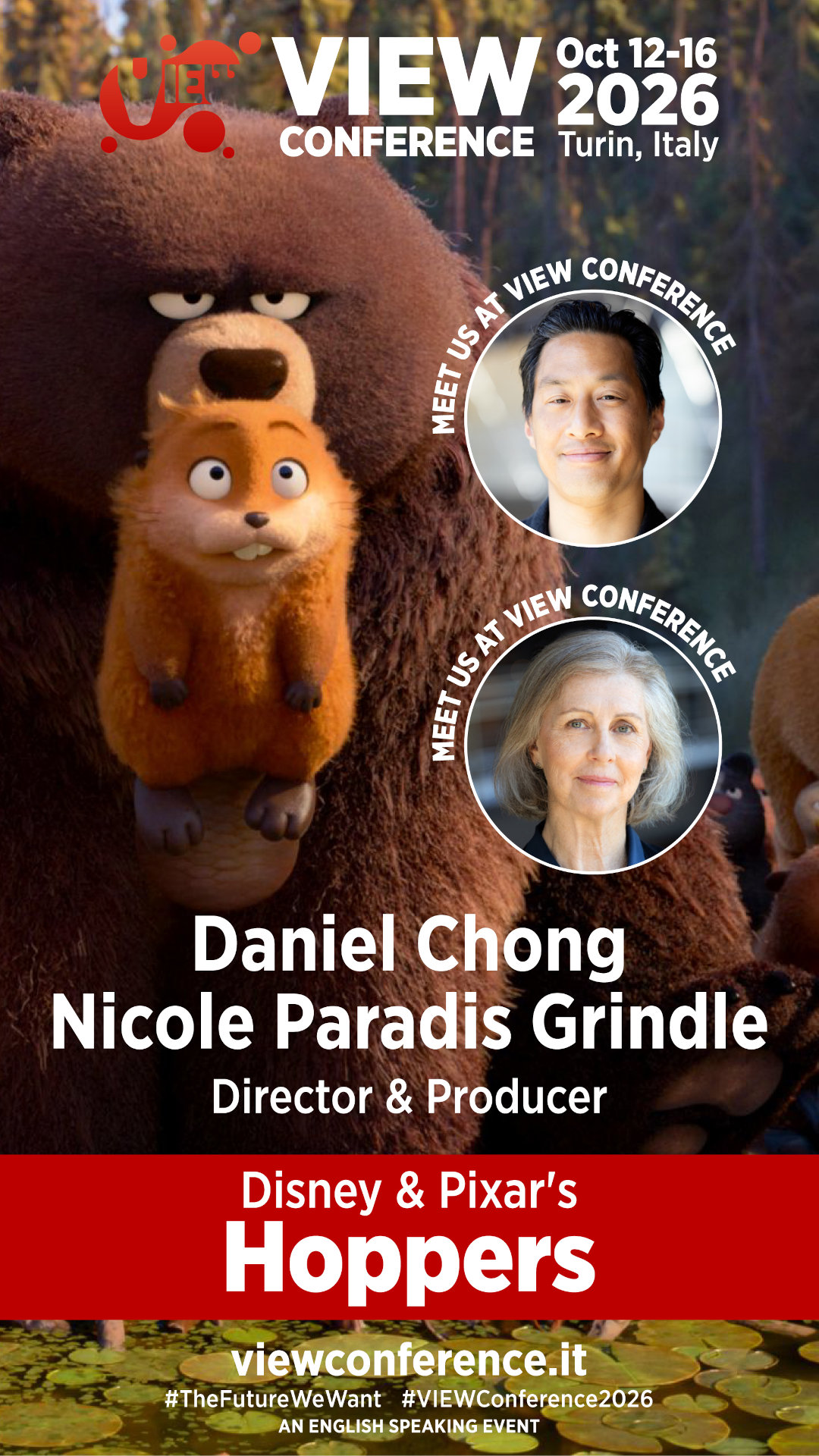 Hoppers, are attending VIEW Conference 2026 in Turin, Italy, this October. Appearing live on stage in front of the conference's international audience, Chong and Grindle will share their secrets behind the creation of this fun and original animated feature.