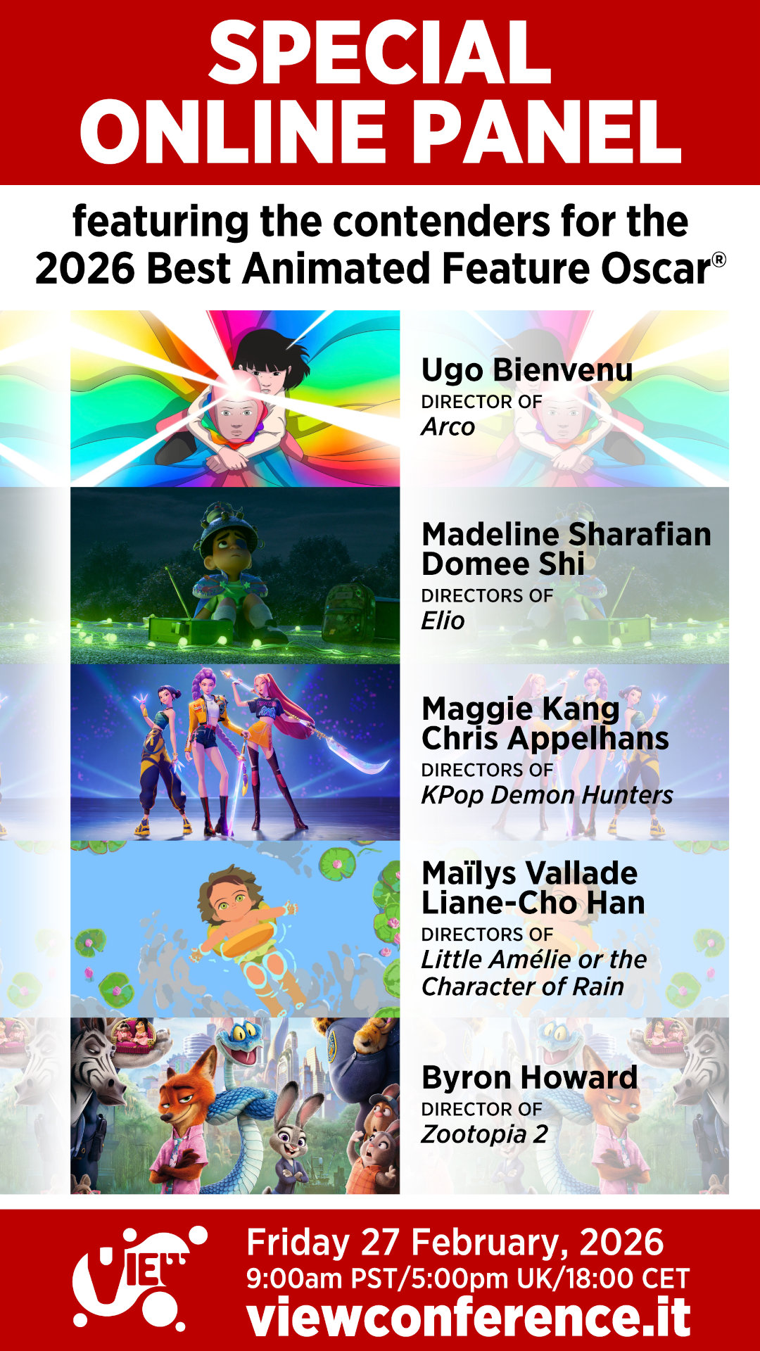 “The list of nominees for this year’s Best Animated Feature Oscar is nothing short of incredible,” says Conference Director Dr. Maria Elena Gutierrez. “I am honored to welcome the directors of these remarkable films to our free online VIEW Conference panel, to share their creative energy and passion with our international audience. I urge everyone with an interest in animation to register for the event now – you definitely won’t want to miss this one!”