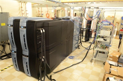 Near the front is Tigris, a snowflake-shape configuration of sixteen chassis that was built to emulate Fermi. It's physically the biggest emulator in the lab, but no longer the most powerful. That title goes to Indus, a multimillion-dollar steel-blue piece of hardware a little longer than a minivan.