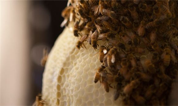 The set's non-standard conditions meant the director, DP and as many as 15 of the crew had to wear full beekeeper suits to protect themselves from being stung by the zealous sculptors. The result is a beautiful glimpse into the process that may cause viewers to change their minds about the feared insect, as beekeeper Robin imparts the wisdom, "The venom of the bee means that you are going to get the sweetness of the honey."