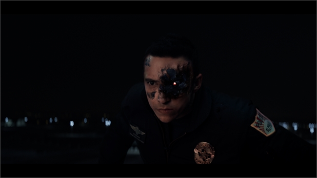 Hotly pursued by Rev-9, Sarah, the T-800, Dani and Grace break into a military base to steal a C-5. The quartet are followed in flight by Rev-9 in a helicopter and an epic battle ensues. Scenes inside the C-5 cargo bay were filmed on a predominantly bluescreen set piece. Method artists then digitally created the C-5 interior based on a provided asset, swapping out the actors for digital doubles as needed; the helicopter was full CG. For maximum authenticity as the helicopter explodes, the team created a highly detailed version of the asset, modeling everything from the engine block to the interior door upholstery.