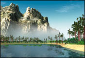 June 1997 To satisfy the need for realistic computer-generated environments in gaming, architecture, art, broadcast, and scientific studies, artists began using landscape-specific software to replicate natural environments. This scene, with its towering mountain and rippling water, was created with Animatek World Builder Toolkit.