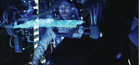 For the heads-up display in the exo-suit, the trick was to create a cloud of information that Van De Merwe, who is wearing the suit, couldn’t possibly understand. “That was Neill’s overriding direction,” Aitken says, “to make it not at all clear what the display is telling him, so that was fun.”