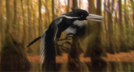 The ivory-billed woodpecker above is digital, created at Cornell University.