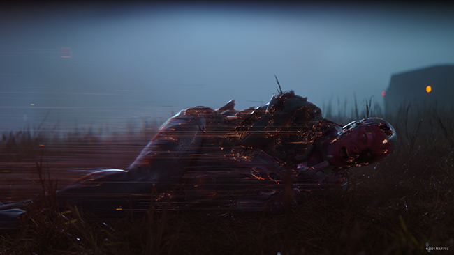 One of the most challenging aspects, according to DeMarco, was retaining a photographic feel while keeping the overall effect simple-looking. Processing all the glows and light interactions through detailed mist renders provided texture and breakup. All of this was then composited together using Foundry's Nuke, with additional 2D chromatic glitching added over the environment and Vision to keep in line with the glitching treatment applied across the whole show.